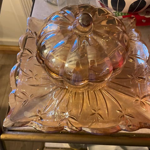 Skål og kakefat laget av lokal kunstner, men kjenner ikke navnet. Helt uten merker, som ny.
