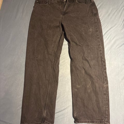 Svarte jeans selges. Buksene er kjøpt på Junkyard. Står ikke noe størrelse på buksene men de passer meg på 1.98 veldig greit. Det er mulighet for å stramme buksene både ved hofta og ved anklene