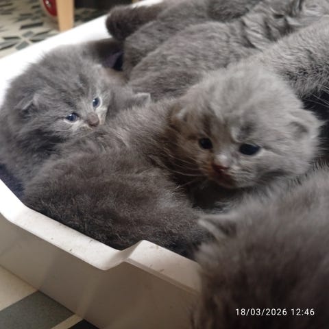 Diadora's I- kull med blå kattunger født 2025 etter premierte foreldre.
