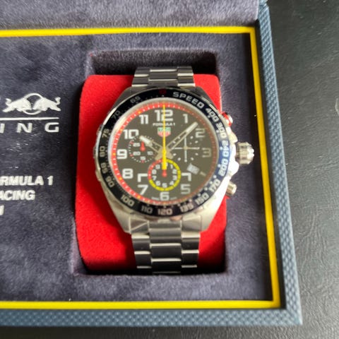Selger et nesten ubrukt eksemplar av en TAG Hauer Red Bull Racing Edition med kvitering og sertifikat