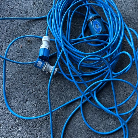 Trengte denne lange kabelen i egen havn da jeg måtte legge båten med baugen inn.. båten var 12 m lang.. så kabelen må være over15 m