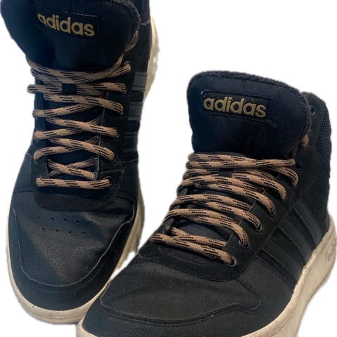 Selger mine adidas sko da de ikke blir brukt. Skoene er brukt FÅ ganger og er hele og pene, (se bilder), en kan se på det hvite at de er brukt et par ganger som man gjør med alle sko. 150,-