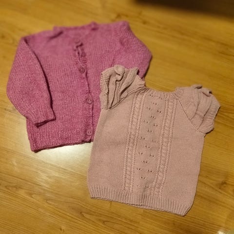 Nydelig strikke jakke til jente 2-4 år. Modellen er kort.