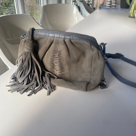 Liten lysegrønn semsket skinnveske fra Beck Søndergaard. Regulerbar lang reim Lite brukt, som ny. Kan sendes