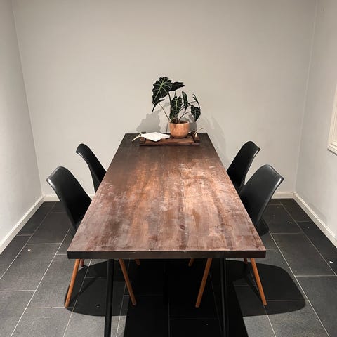 Pent brukt bord Skandinavia fra Bolia. 90 cm bredt 73 høyt og 180 langt. Følger med ileggsplater som er hjemmelagde. Fungerer fint under duk