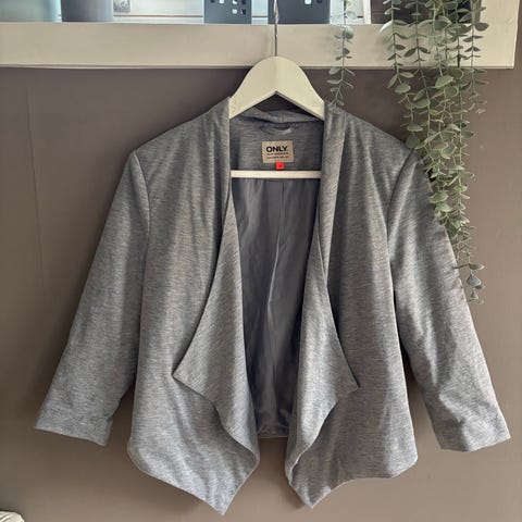 Er drapert på skulder med liten puff nydelig neckline og splitt i erme. Oppleves som normal i størrelsen. 54cm lengde målt midt på ryggen fra topp til bunn, 56cm fra armhule til armhule, litt misvisende siden den skal være litt løs grunnet snittet i halsen så vil si den er mer 50cm om det gir mening. Denne vil passe en normal large (40).