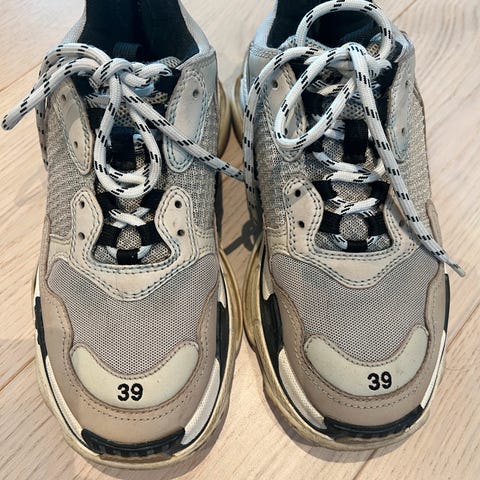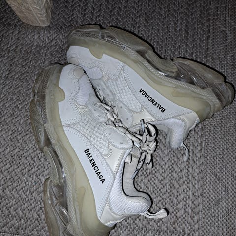 Selger originale Balenciaga Triple S women leather free sko i str 38 (passer en 38,5/39) - kjøpt brukt men ble for store for meg 🥹 Kun prøvd på. Forrige eiger hadde kjøpt dem på gamle Balenciaga butikken Oslo, brukt et par ganger. Ny pris 8000kr