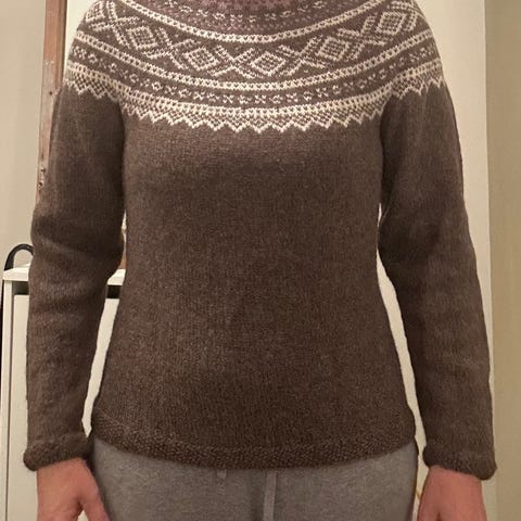 Se gjerne mine andre annonser – jeg har flere håndstrikkede gensere til salgs 🧵