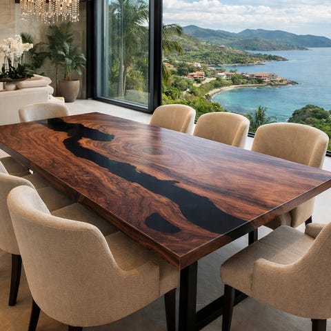 Dekorasjon, Møbler, Spisebord tre, dekorasjon, epoxy bord, living table, valnøtt epoxybord rustikk, plank, planker