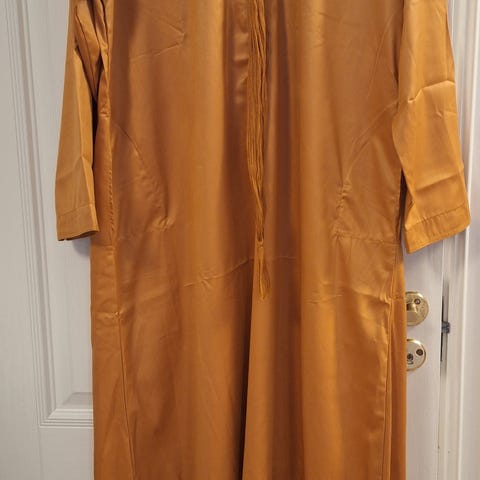 Indisk kurta som mannen min brukte en gang til et bryllup i India. Det kommer med noen beige bukser. Det passer til en mann med 1.60 m. Nytt.