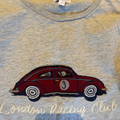 Pent brukt, grå t-skjorte med bilmotiv. Str 140 cm / 9- 11 år. Kjøpt på VM i Rallycross på Lånke.