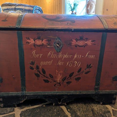 Original kiste fra 1905. Fin som møbel og til oppbevaring. Ca mål; 110 bred, 55 fyp og 55 høy. Må hentes I Trondheim