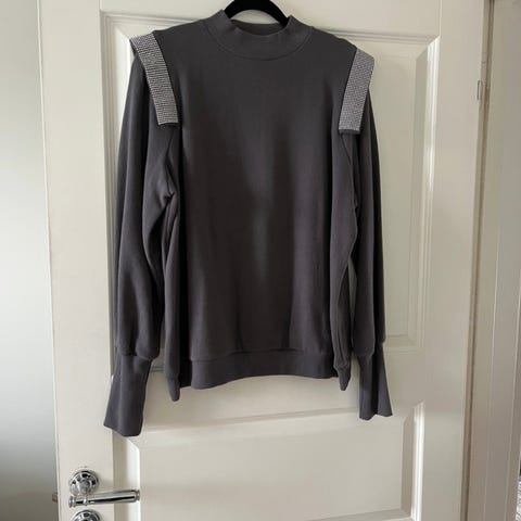 Kul oversized sweatshirt med glidelåser på hver side og skinn-elementer på armene