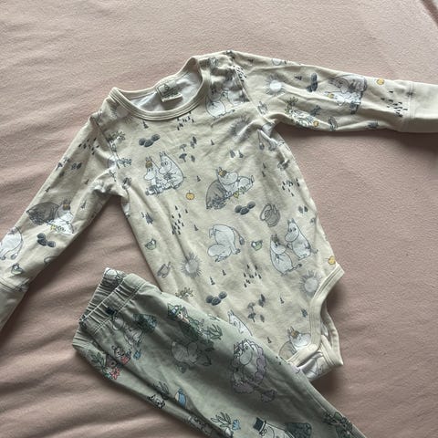 Klespakke str 74 selges. To stk sett med bukse og genser, tre stk body og to stk bukser.