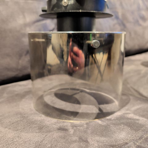 A unique ceiling Lamp for sale. Made out of glass with a mountain range detail/motif on the inside. Diameter is 56 cm height is 42 cm from base to top of glass not including wires up to ceiling and weight is approx 10-15 kg. Highly recommend you come and see.