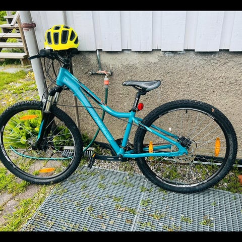 Pent brukt tråsykkel med pen blåfarge fra kvalitetsmerke TREK. Passer godt til barn i en alder av 12 og oppover.