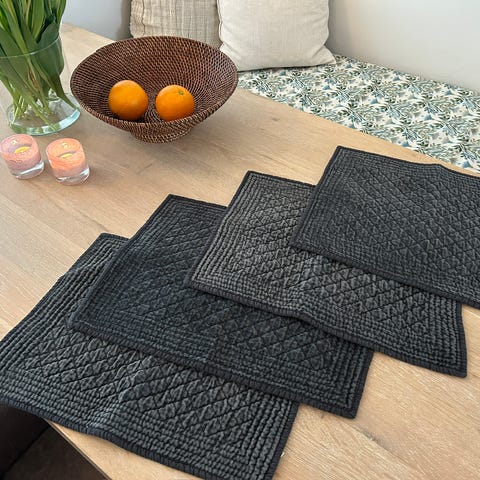 Sorte bordbrikker av farget strå eller lignende gis bort. Noe flekker/slitasje på ene siden, fin på den andre 🙂 Må hentes