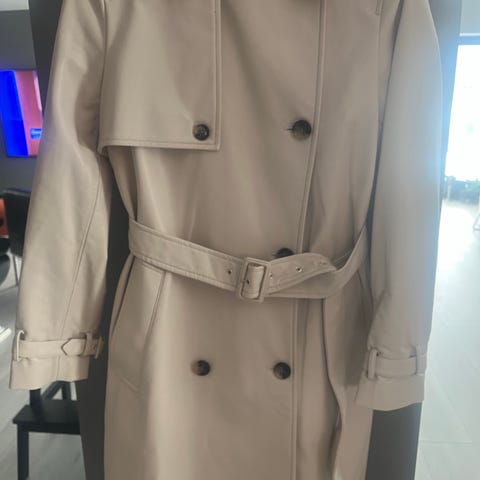 Den er aldri brukt. Fin overgangs/høst jakke med fine detaljer.