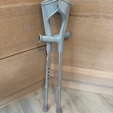 Barnekrykker som kan reguleres i lengde, fra ca 70 til 95 cm.
