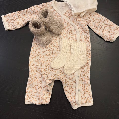 Nyfødt ullpakke luer og sokker/tøfler 0-3 måneder