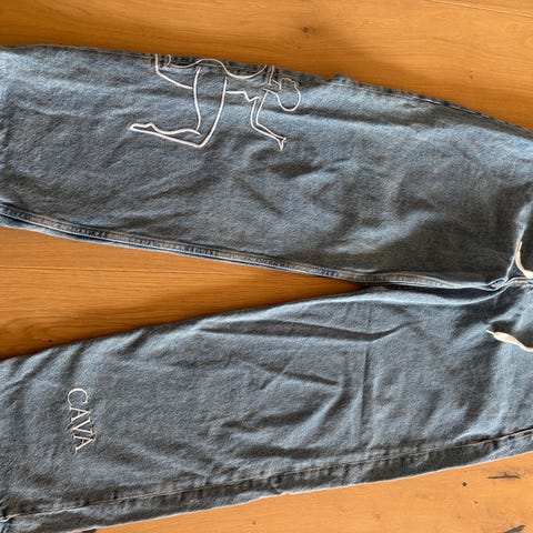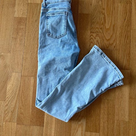 Nesten nye bukser fra Junkyard! De er ganske vie i bunnen av bena, derfor navnet «wide leg jeans».