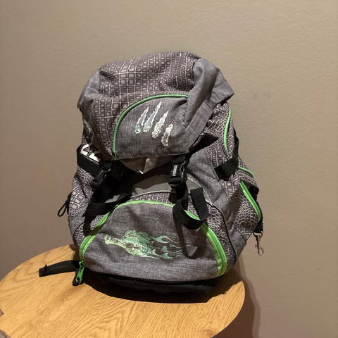 I god stand, brukt, vasket i maskinen og ren. Lite bruksmerker og print har litt slitasje men alle glidelås etc virker som dei skal, ingen feil. Ågsa litt slitasje på topp parten hvor drawstring er. Brukt til bare 1 år. Frakt med Postnord 69kr uten Fiks Ferdig.