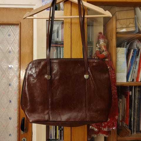 Vintage drawstring veske. I god stand , noen løse tråder på rem, men hel og fin. Foret.