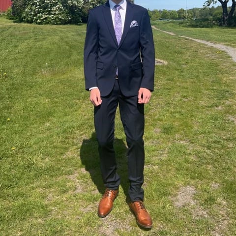 Selger en flott blå dress, brukt kun en gang. Jakke str. 48 ( slim fit ) Bukse str. 32/32