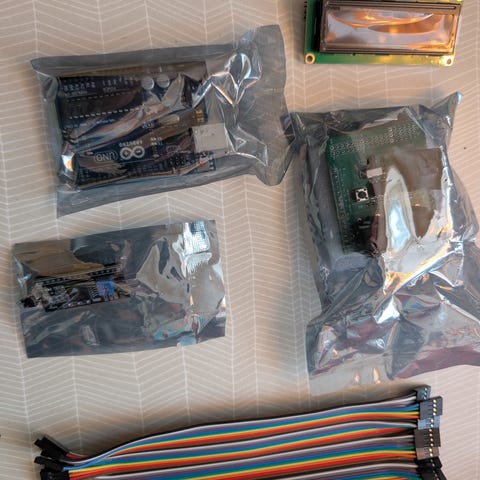 Nesten ikke brukt Arduino Uno R3 med masse komponenter. Perfekt for noen som ønsker å starte med programmering.