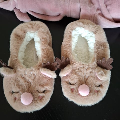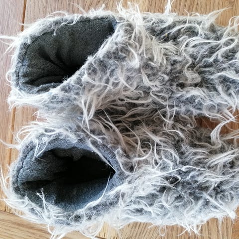 Myke kosetøfler med gummisåle og pels inni.