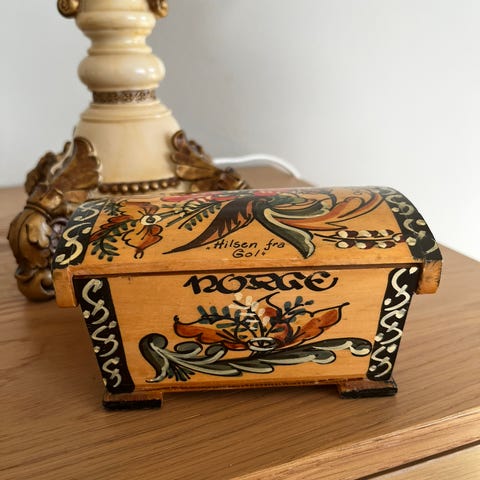 Et gammelt treskrin som kan brukes til diverse ting selges kr 90.
