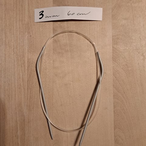 Rund strikkepinne (rundpinne) til strikking. Står 5 mm på den