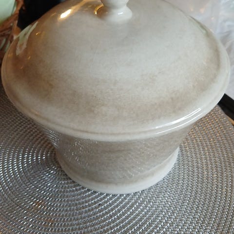 i diameter og ca 14,5 cm høy inkl. knotten.