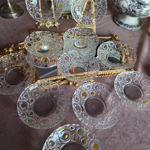 Svært pene, med unntak av at glasuren har gått av et sted på kanten av hver av skålene. Se bilder.