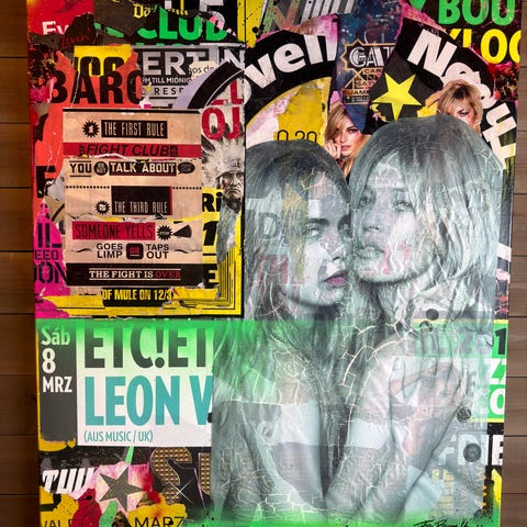 Bilde av Ari Behn på stort 150x100cm lerret av høy kvalitet. Mye action på en gang, så her er det mye å se på. Flotte farger som går glatt sammen.