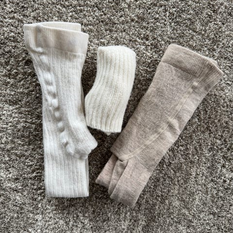 Den grå strømpebuksen er fra Mole, i ull, st 62/68.