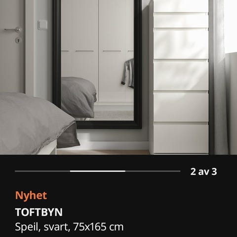 TOFTBYN speil i størrelse 75x165 selges.