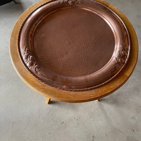 "Røkebord" i heltre med kobberplate fra tidlig 1900-tall.