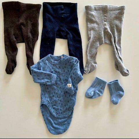 Pent brukt utedress/ vinterdress baby i str. 68. Fargen er i marineblå. Foret innvendig. Fint å ha når man skal ha baby i bæresele. Vottene er festet med trykkknapper så de kan lett tas på og av dressen