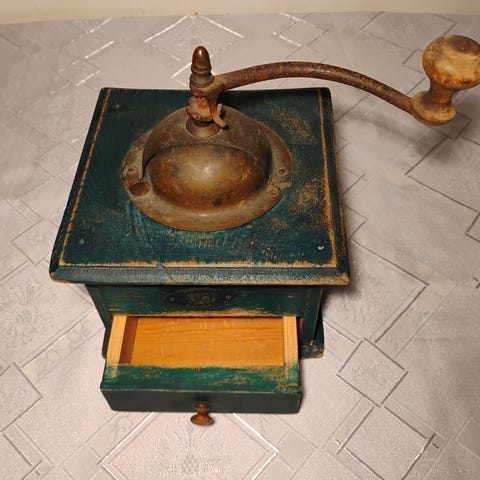 Stor antikk kaffekvern. Med støpejern
