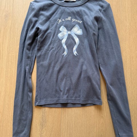 Ubrukt (kunn prøvd på) Monki tynn genser/topp i str.xxs. Svart farge (ser grå ut på bilder, men er svart). Med glitterlam på front.
