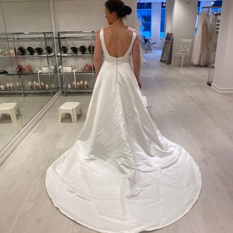 Brudekjole selges. Størrelse 42. Brukt av meg, 175 høy. Kjøpt hos Kristins Brudesalong i Oslo. Har kvittering. Nypris på brudekjolen var 21.000. Selges for 15.000. Selger sløret også til 4000. Nypris var 7000. Har også kvittering på dette. Alt blir renset før salg. Kjøpt våren 2023.
