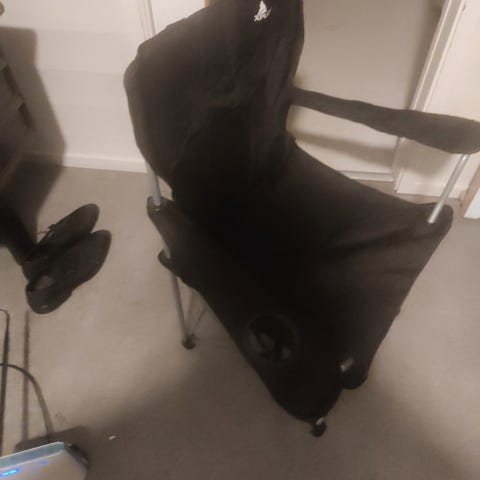 Den er cirka 10 år gammel. Cirka 1 meter høy. Den er laget for å transportere gasskanne på campingplass. Transporttralle som er lite og pent brukt de siste årene.