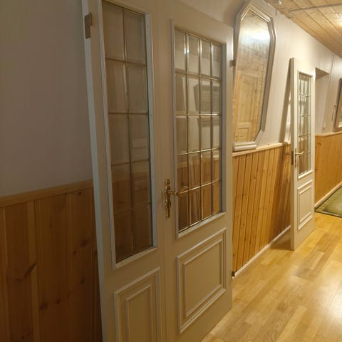 Doble glassdører med aluminiumsramme. Dør og karm er i meget god stand, ingen riper eller spor etter tidligere montering.