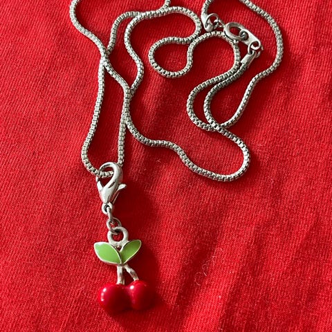 Rødt hjerteanheng m/sølvkjede. Stemplet 925.