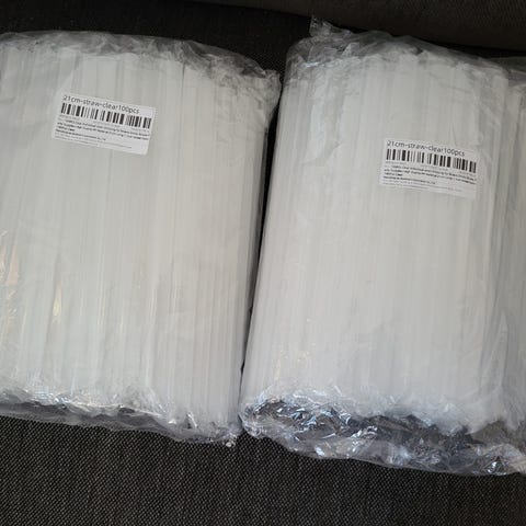 Det er 100stk i en pakke, prisen per pakke er 100kr. Perfekt for barnebursdag og til smoothie osv.