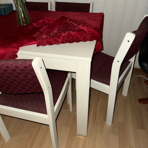Spisebordet er solgt, 2 stoler igjen. Stolene selges for kr. 150.