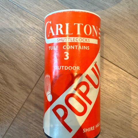 Uåpnet rør med 10 stk badmintonballer av merket Vinex Wincock.