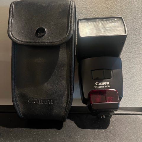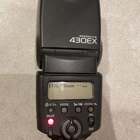 Selger en Canon Speedlite 580EX II som har vært pent behandlet og minimalt brukt. Blitz er i topp stand, med under 100 utløste blits. Den har alltid vært lagret uten batterier, så ingen risiko for batterisyreskader. Vær oppmerksom på at det ikke følger med noe tilbehør.
