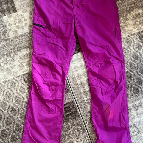 Myk turbukse fra Stormberg, tidligere kolleksjon, inne lenger tilgjengelig i butikk eller på nett. Fin brunfarge. Laget i polyester og spandex. Praktiske lommer på lårene, beltehemper og snøring nede i bena.
